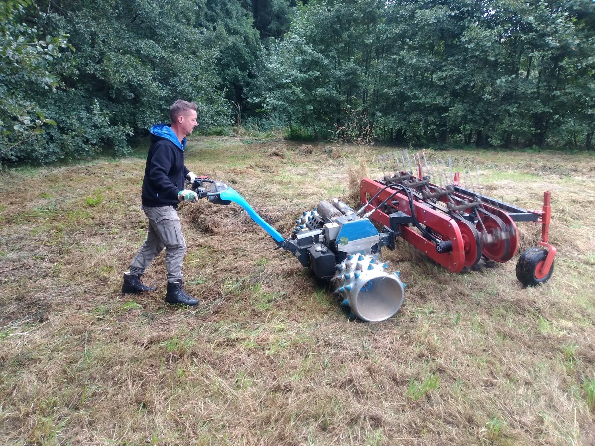 Diese Flächen werden jetzt von der Biologischen Station mittels eines handgeführten Balkenmähers gemäht und das Mähgut wird anschließend per Hand zusammengerecht und abtransportiert. Größere Maßnahmenflächen werden in Kooperation mit anderen Landwirten durchgeführt.